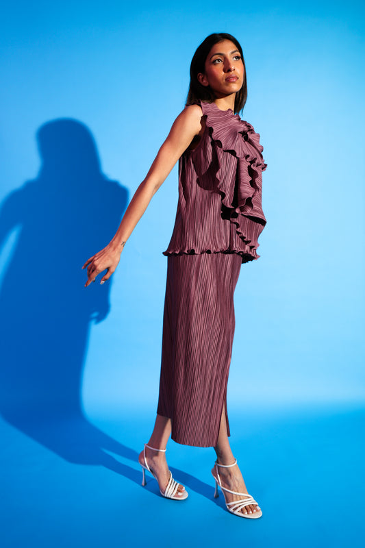 Pencil pleated purple skirt
