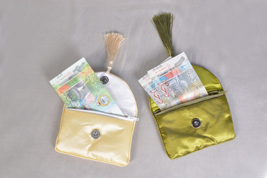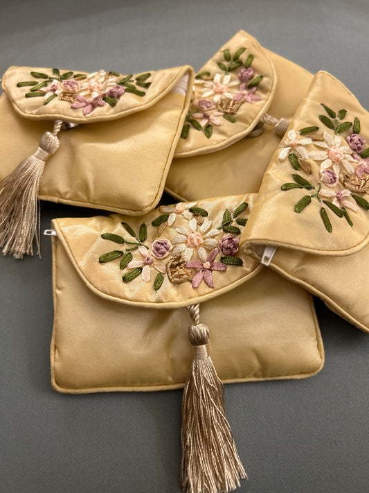 Mix bundle of 4 green and yellow silk traditional Chinese money pouches.